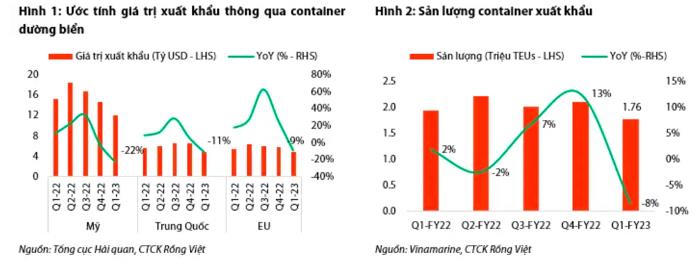 Cụ thể, giá trị xuất khẩu hàng hóa thông qua container đường biển quý I ước tính đạt 43 tỷ USD, giảm 10% so với cùng kỳ.