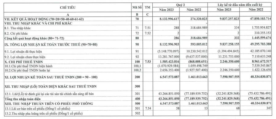 Lũy kế 6 tháng đầu năm, doanh thu và lãi sau thuế công ty đạt lần lượt 38 tỷ đồng và 7,6 tỷ đồng, đi lùi 65% và 81% so với cùng kỳ.