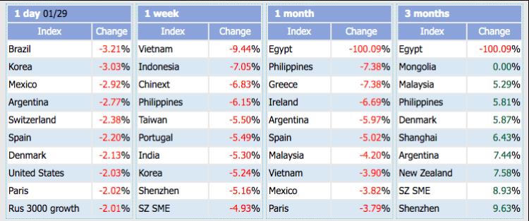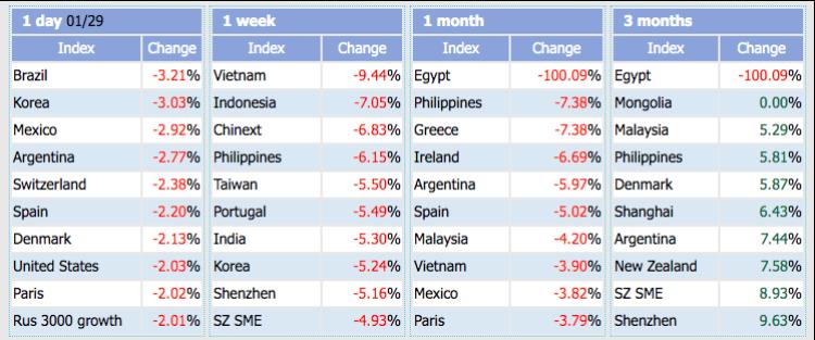 Phần lớn những thị trường giảm mạnh nhất tuần qua đều thuộc khu vực châu Á. Tiếp sau Việt Nam là Indonesia, Trung Quốc, Philippines, Đài Loan... với mức giảm từ 5,5-7%.