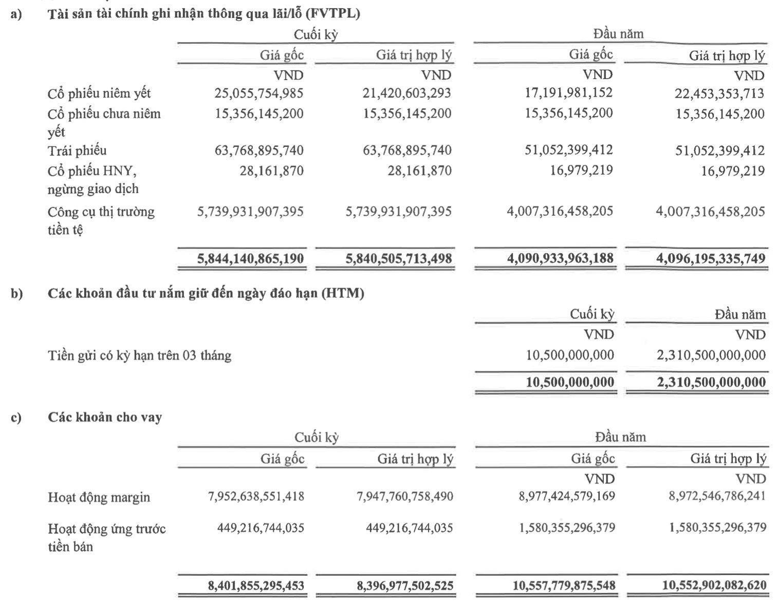 Tại thời điểm 30/9/2022, giá trị ghi sổ FVTPL đạt 5.844 tỷ đồng, trong đó chiếm tới 5.740 tỷ đồng là công cụ thị trường tiền tệ (chứng chỉ tiền gửi), giảm 1.570 tỷ đồng so với cuối quý 2.