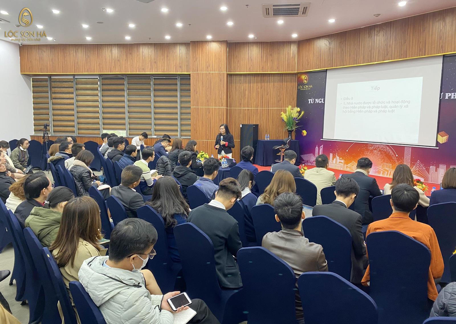 Chương trình đào tạo đã mang tới cho học viên cùng toàn thể các sales tham dự kiến thức từ cơ bản nhất tới nâng cao về luật đất đai, đưa ra những nhận định cũng như giải đáp mọi thắc mắc mà mọi người đặt ra. Diễn giả lần này Lộc Sơn Hà Land may mắn mời được tới, chính là TS.Nguyễn Thị Kim Thoa - Nguyên Vụ trưởng Vụ Pháp luật Bộ Tư pháp.