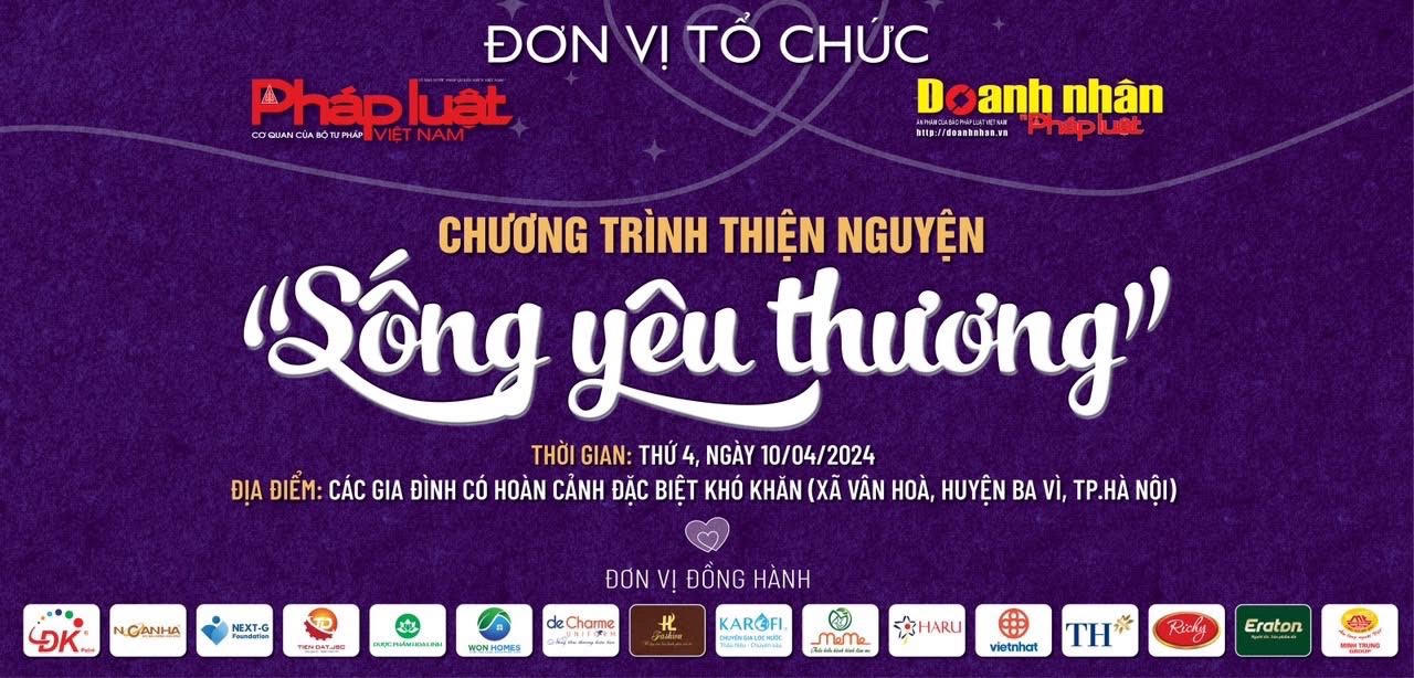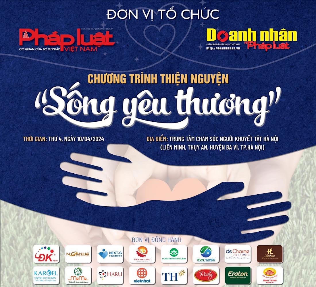 Chương trình thiện nguyện “Sống yêu thương” do Ban DN&PL (Báo Pháp luật Việt Nam) khởi xướng, với sự đồng hành của rất nhiều doanh nghiệp, doanh nhân, nhà hảo tâm sẽ diễn ra vào ngày 10/4/2024. Chương trình sẽ trao các phần quà bao gồm tiền mặt và các sản phẩm với tổng giá trị gần 250 triệu đồng tới Trung tâm Chăm sóc người khuyết tật Hà Nội và 23 hộ gia đình có hoàn cảnh đặc biệt khó khăn tại xã Vân Hoà, Ba Vì, Hà Nội.