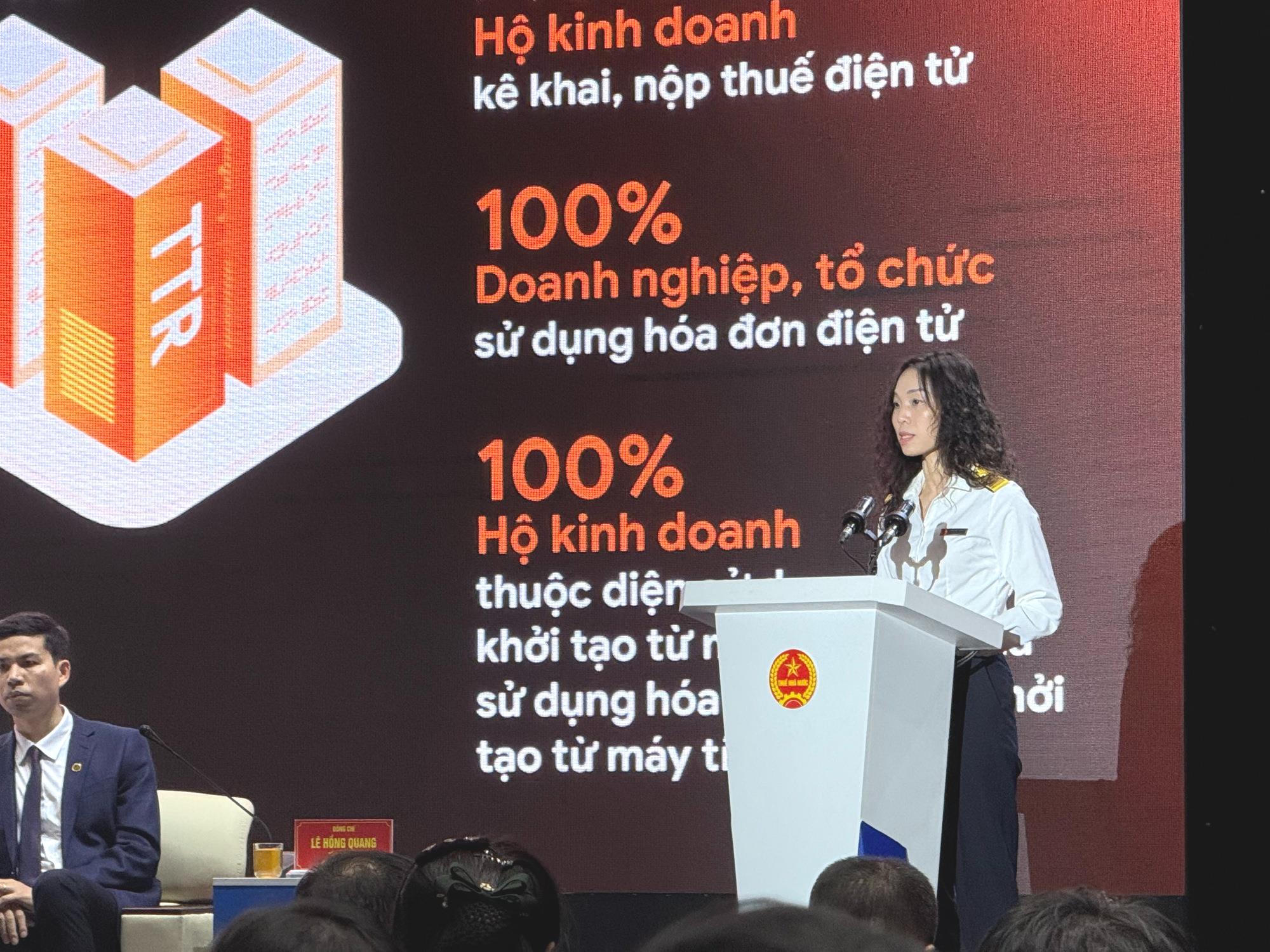 Phát biểu tại tọa đàm chuyên đề "Giải pháp chuyển đổi số hỗ trợ doanh nghiệp, hộ kinh doanh theo Nghị quyết số 68-NQ/TW của Bộ Chính trị về phát triển kinh tế tư nhân", do Cục Thuế phối hợp tổ chức chiều ngày 8/9, bà Nguyễn Thị Thu – Trưởng Ban Nghiệp vụ Thuế, Cục Thuế (Bộ Tài chính) nhấn mạnh: Công tác xây dựng giải pháp toàn diện về chuyển đổi số đã được ngành Thuế đặc biệt chú trọng và phát triển trong hơn 30 năm qua. Đáng chú ý, toàn bộ doanh nghiệp, tổ chức và hộ kinh doanh thuộc diện áp dụng hóa đơn điện tử có máy tính tiền đã chuyển đổi theo quy định, góp phần hiện đại hóa công tác quản lý.
