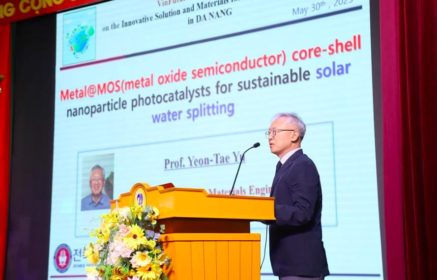 Yeon-Tae Yu (Đại học Quốc gia Jeonbuk, Hàn Quốc) đã giới thiệu những bước tiến trong nghiên cứu cấu trúc nano lõi – vỏ Metal@MOS, một chất xúc tác tiềm năng ứng dụng trong quá trình tách nước bằng năng lượng mặt trời. Ông chia sẻ: “Cấu trúc nano lõi – vỏ kim loại MOS giải quyết căn bản hai thách thức then chốt trong quang xúc tác: nâng cao hiệu suất phản ứng nhờ chất xúc tác kim loại quý, đồng thời đảm bảo tính ổn định lâu dài bằng cách bảo vệ các chất xúc tác khỏi bị suy thoái.”