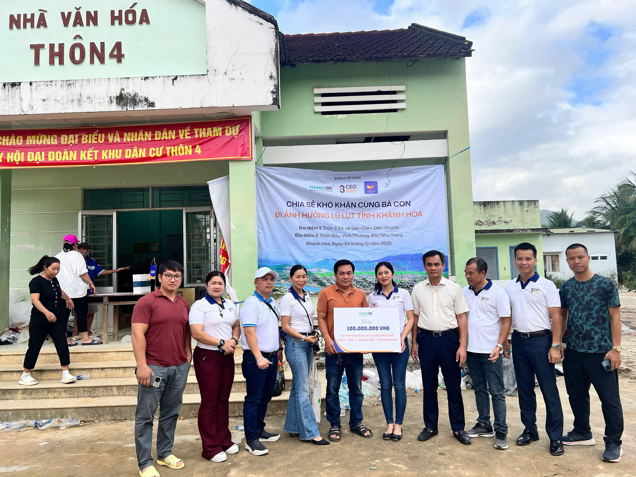 Ngày 4/12, sau những trận mưa lớn kéo dài, nhiều khu vực tại Khánh Hòa bị ngập lụt và chịu thiệt hại nặng nề về tài sản, nhà cửa, khiến cuộc sống người dân gặp nhiều khó khăn. Trong bối cảnh đó, đoàn thiện nguyện của CLB CEO 1983 thuộc Hội Doanh nghiệp Trẻ Hà Nội phối hợp cùng Hội Doanh nhân Trẻ Khánh Hòa, với sự đồng hành từ doanh nhân Phạm Thị Nguyệt - CEO Vier Fine Wine, tổ chức chuyến cứu trợ khẩn cấp, mang theo tình cảm và sự sẻ chia đến với các hộ dân bị ảnh hưởng.