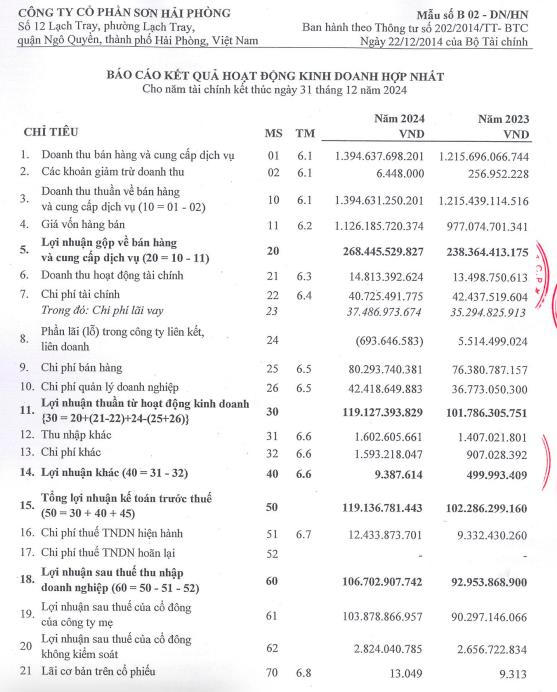 Về bức tranh tài chính, theo báo cáo kinh doanh hợp nhất năm 2024, HPP ghi nhận doanh thu thuần đạt 1.394 tỷ đồng, tăng 14,7% so với cùng kỳ năm ngoái. Lợi nhuận sau thuế đạt 106,7 tỷ đồng, tăng 14,8% so với năm 2023.