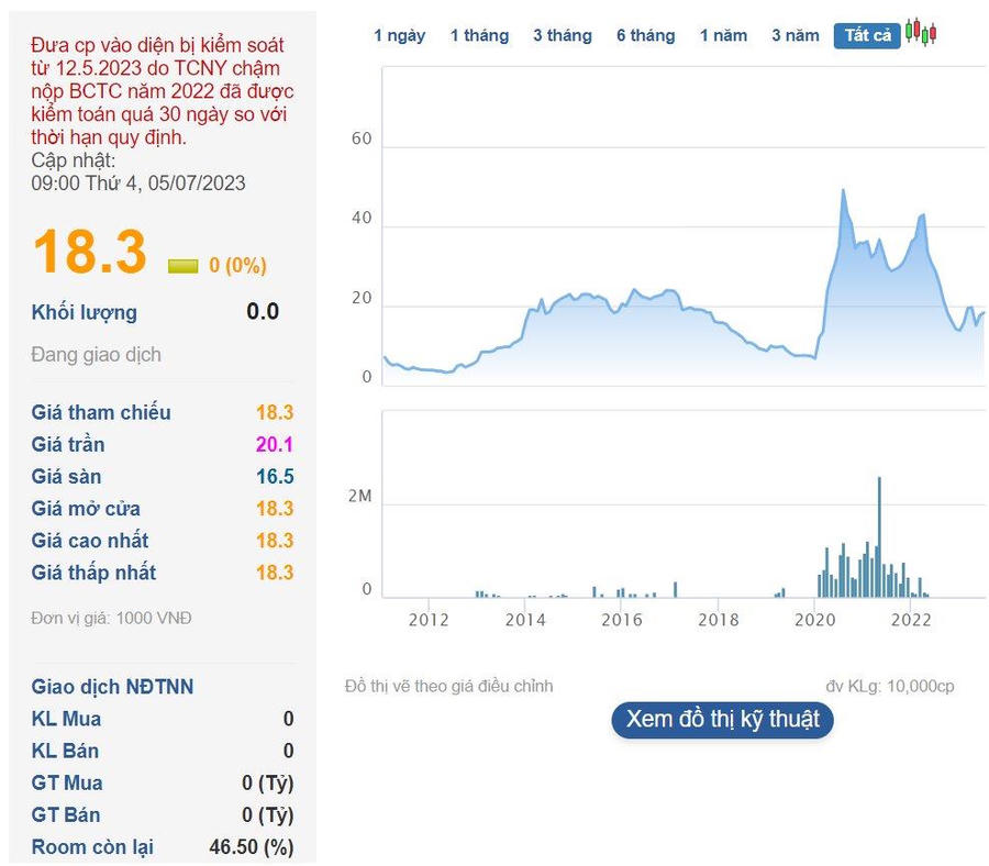 Đến tháng 3 năm 2022, cổ phiếu này lại một lần nữa "nổi sóng" khi tăng từ mức 37.500 đồng/cp lên 63.330 đồng/cp, tương ứng mức tăng gần 70% sau nửa tháng. Ngay sau đó thị giá cổ phiếu này đã lao dốc và bị hủy niêm yết như hiện tại.