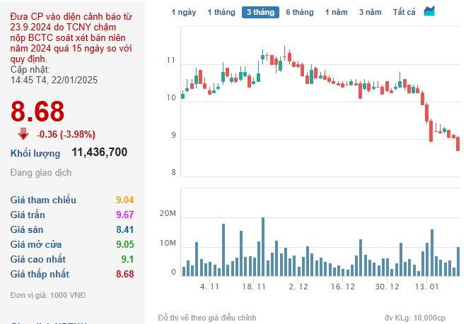 Tương tự, cổ phiếu NVL của Novaland tiếp đà “lao dốc”. Kết phiên 22/01, giá cổ phiếu NVL ở mức 8.680 đồng/cổ phiếu, giảm 3,98% so với phiên trước, khối lượng cổ phiếu giao dịch khớp lệnh đạt hơn 11,4 triệu đơn vị.