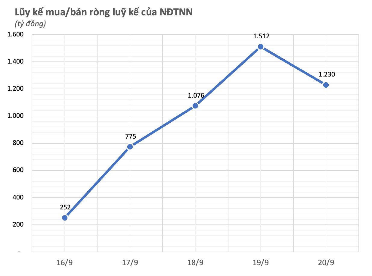 Xét riêng từng sàn, nhà đầu tư nước ngoài mua ròng 1.223 tỷ đồng trên HoSE, mua ròng 71 tỷ đồng trên HNX và bán ròng 64 tỷ đồng trên sàn UPCoM.