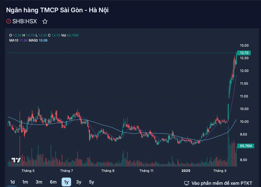 Phiên giao dịch ngày 27/3, SHB là cổ phiếu ngân hàng tăng mạnh nhất khi tăng 3,7% lên 12.700 đồng/cp, khối lượng giao dịch đạt gần 64 triệu cổ phiếu, trong bối cảnh toàn ngành ngân hàng chỉ có ba mã giữ được sắc xanh. Đà tăng ấn tượng này cho thấy niềm tin của nhà đầu tư vào tiềm năng tăng trưởng và chiến lược phát triển của SHB. Sau 2 tuần cổ phiếu, SHB bật tăng 28%, với thanh khoản bình quân 50 triệu cổ phiếu mỗi phiên.
