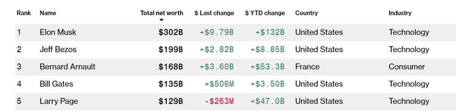 Giá trị tài sản ròng của vị tỷ phú 50 tuổi này hiện là 302 tỷ USD, bỏ xa các tỷ phú còn lại trong bảng xếp hạng những người giàu nhất thế giới.