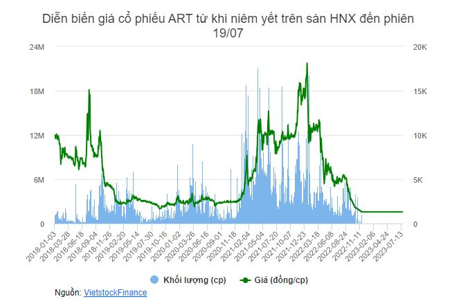 Trước đó, cổ phiếu ART đã bị đình chỉ giao dịch trên HNX từ ngày 21/11/2022. Nguyên nhân là Công ty tiếp tục vi phạm quy định về công bố thông tin sau khi chứng khoán bị đưa vào diện hạn chế giao dịch, cụ thể là chậm nộp BCTC quý 3/2022.