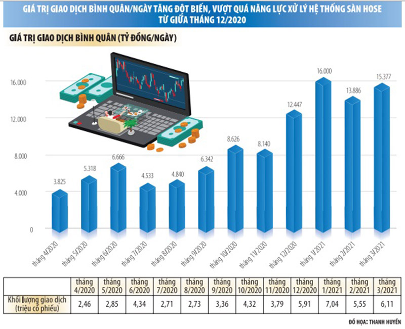 Thanh khoản thị trường tăng trưởng ấn tượng thời gian qua tưởng chừng đã là thành tích của ngành chứng khoán trong việc thu hút nguồn lực vốn của thị trường. Nhưng đến nay, bài toán nguồn lực khan hiếm, cụ thể là năng lực xử lý hạn chế của hệ thống giao dịch cũ đang đặt ra bài toán khó nhất trong lịch sử hoạt động của sàn HoSE.