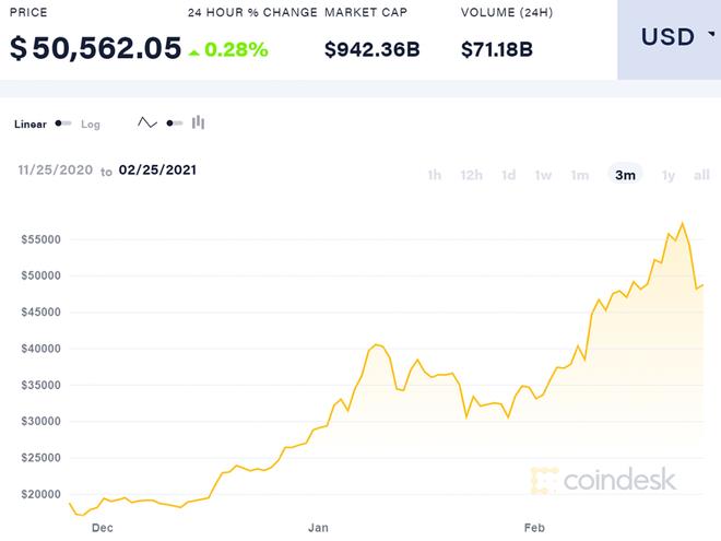 Giá Bitcoin lần đầu vượt mốc 50.000 USD trong tháng này sau khi hãng xe điện Tesla của tỷ phú Elon Musk cho biết đã mua 1,5 tỷ USD Bitcoin và cho phép khách hàng Tesla thanh toán bằng loại tiền mã hóa này.