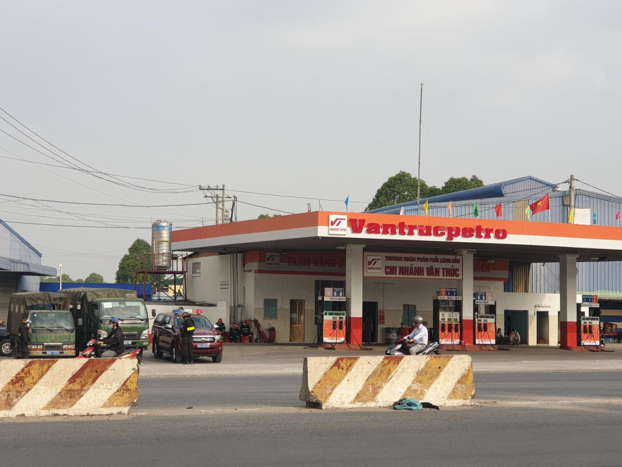 Theo ghi nhận, các cây xăng bị công an bao vây, khám xét mang biển hiệu của Công ty Vân Trúc.