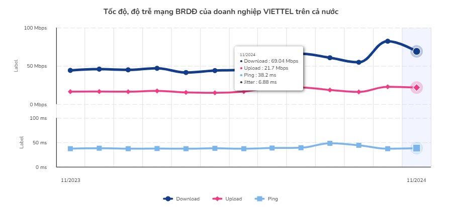 Xét trên chất lượng nhà cung cấp dịch vụ tại Việt Nam, theo số liệu của i-Speed, xét trên chất lượng Internet tải xuống, nhà mạng Viettel hiện đang dẫn đầu, ghi nhận tốc độ 69,04 Mbps. Tuy nhiên so với tháng trước, con số này giảm đến 13,26 Mbps.