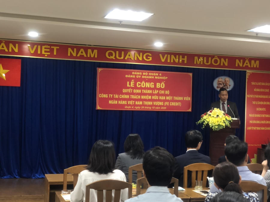 Ngày 25/6, Ban chấp hành Đảng bộ Quận 4 đã tổ chức Lễ công bố Quyết định thành lập và ra mắt Chi bộ Công ty Tài chính TNHH MTV Ngân hàng Việt Nam Thịnh Vượng (FE Credit).