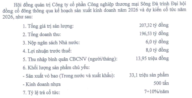 CTCP Công nghiệp Thương mại Sông Đà (mã ck: STP) vừa công bố tài liệu ĐHĐCĐ thường niên năm 2026.