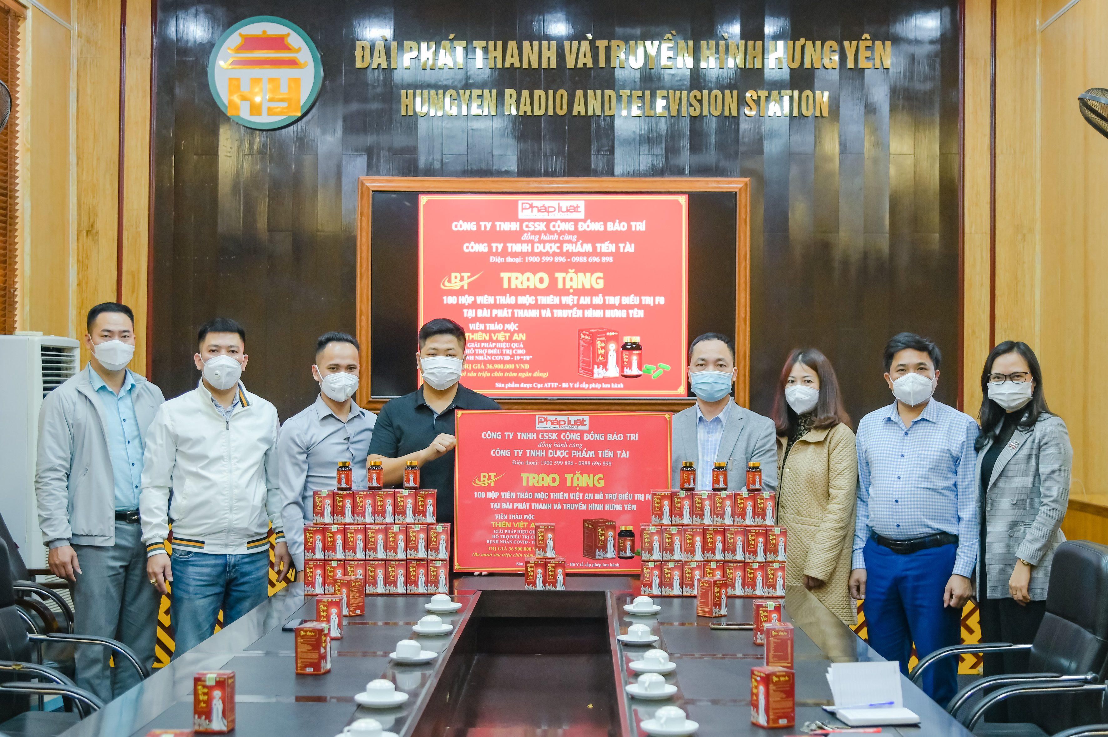 Công ty Bảo Trí trao tặng hàng trăm hộp sản phẩm Viên thảo mộc Thiên Việt An cho Đài Phát thanh và Truyền hình Hưng Yên