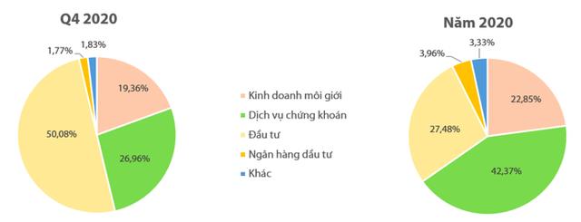 Ngược lại, dịch vụ chứng khoán giảm 15%, đóng góp 198 tỷ đồng vào tổng doanh thu của công ty. Riêng doanh thu từ hoạt động cho vay margin đạt 174,8 tỷ đồng, giảm 17% so với năm trước. Dư nợ margin cuối năm 2020 ở mức 1.257 tỷ đồng, giảm nhẹ gần 3% so với đầu năm (1.296 tỷ đồng).