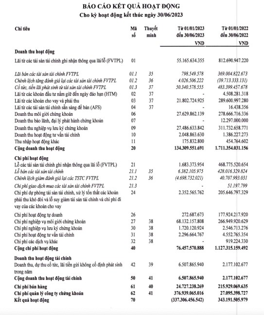 Về tình hình kinh doanh của TVSI, tại báo cáo tài chính bán niên 2023 sau soát xét, công ty ghi nhận khoản lỗ sau thuế lên đến 336 tỷ đồng, chênh lệnh lớn so với mức lãi 24 tỷ đồng trên báo cáo tài chính tự lập.