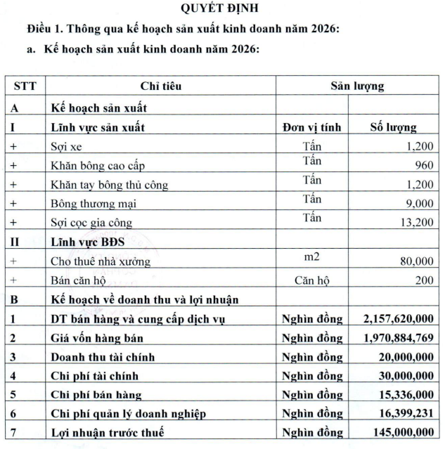 Đặt mục tiêu lãi trước thuế năm 2026 là 145 tỷ đồng