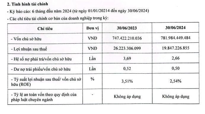 Tỷ suất lợi nhuận sau thuế/vốn chủ sở hữu đạt 2,54% trong khi cùng kỳ năm ngoái là 3,51%.