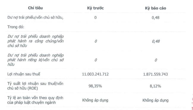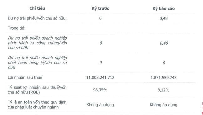Tỷ lệ suất lợi nhuận sau thuế trên vốn chủ sở hữu (ROE) đó giảm từ 98,35% về mức 8,12%.