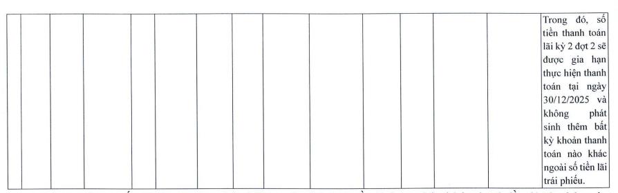 Công ty Đầu tư và Du lịch Sài Gòn - Lâm Đồng chưa thanh toán đúng hạn lãi lô trái phiếu SLTCH2328001 do đã gia hạn thời gian thanh toán lãi trái phiếu kỳ 2 đợt 2.