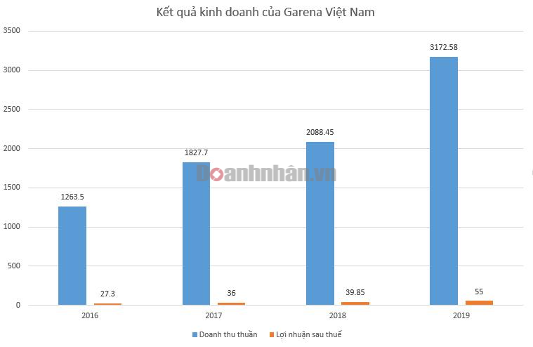 Trong 4 năm gần đây, Garena Việt Nam liên tục tăng trưởng về doanh thu. Chỉ tính riêng trong năm 2019, doanh thu thuần của công ty này đạt 3.172 tỷ đồng, tăng 52% so với năm trước đó, lợi nhuận sau thuế 55 tỷ đồng, tăng 38% so với năm 2018.