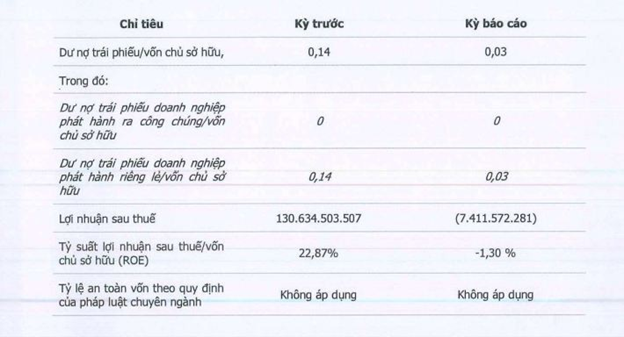 Chuyển từ lãi sang lỗ nên tỷ suất lợi nhuận sau thuế/vốn chủ sở hữu (ROE) vì thế cùng giảm mạnh từ 22,87% về mức âm 1,3%.
