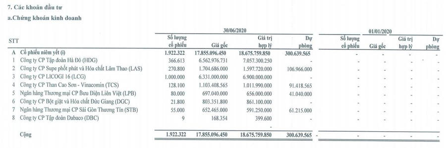 Theo báo cáo tài chính bán niên năm 2020 sau soát xét, tại ngày 30/6, EBS còn dành tới gần 19 tỉ đồng đầu tư chứng khoán với danh mục các cổ phiếu như HDG, LCG, LAS, STB, TCS, LPB... Công ty phải trích lập gần 301 triệu đồng dự phòng giảm giá chứng khoán.
