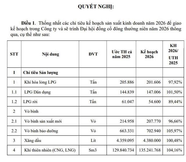 Cụ thể, năm 2026, công ty kỳ vọng đạt sản lượng gần 202.000 tấn khí hóa lỏng LPG, giảm 2% so với ước thực hiện 2025; khí thiên nhiên (CNG, LNG) đạt hơn 135 triệu Sm3, tăng 4%. Hoạt động bán khí LPG, CNG và LNG đang đóng góp phần lớn tỷ trọng doanh thu cho PGS.