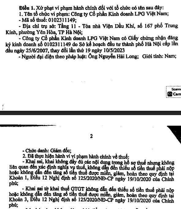 Theo văn bản đề cập, Công ty đã thực hiện hành vi vi phạm hành chính về thuế. Cụ thể, công ty đã khai sai, khai không đầy đủ nội dung trong hồ sơ thuế nhưng không liên quan đến xác didnhj nghĩa vụ thuế, không dẫn đến thiếu số tiền thuế phải nộp hoặc không dẫn đến tăng số tiền thuế được miễn, giảm, hoàn theo quy định. Bên cạnh đó, công ty còn khai sai tờ khai thuế GTGT không dẫn đến thiếu số tiền thuế phải nộp hoặc không dẫn đến tăng số tiền thuế được miễn, giảm, hoàn theo quy định. Ngoài ra, công ty LPG Việt Nam còn lập hóa đơn không đúng thời điểm.