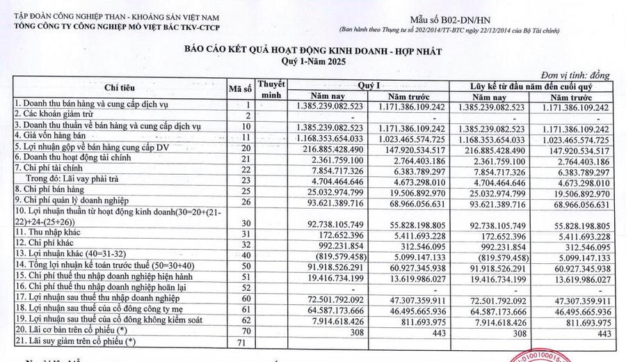 Về bức tranh tài chính, báo cáo kinh doanh hợp nhất quý I/2025 của MVB ghi nhận doanh thu thuần đạt 1.385 tỷ đồng, tăng so với con số 1.171 tỷ đồng cùng kỳ năm ngoái.
