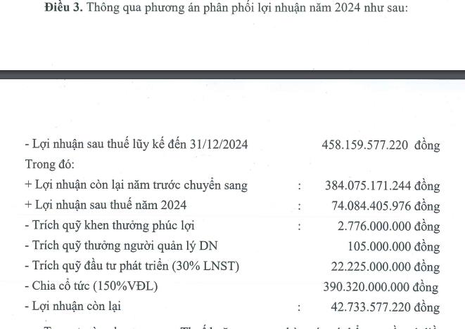 Đáng chú ý, VRG - Bảo Lộc thống nhất chia cổ tức với tỷ lệ lên đến 150% vốn điều lệ, tương đương khoản hơn 390,3 tỷ đồng. Theo đó, lợi nhuận còn lại của Công ty chỉ khoảng 43,7 tỷ đồng.