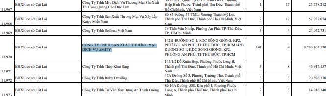 Công ty TNHH Sản xuất Thương mại Dịch vụ Amity (Amity) bị 'nêu tên' với số tiền chậm đóng bảo hiểm lên đến hơn 3,2 tỷ đồng. Thời gian công ty đóng chậm là 9 tháng.