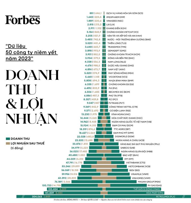 Quán quân doanh thu thuộc về Petrolimex (273.979 tỷ đồng), trong vị trí số 1 về lợi nhuận sau thuế thuộc về Vietcombank (33.033 tỷ đồng).