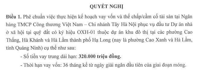 Số tiền vay trung dài hạn là 320 tỷ đồng, thời hạn vay vốn là 36 tháng kể từ ngày giải ngân đầu tiên của giai đoạn móng.