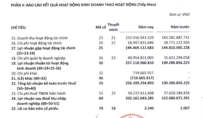 Hoạt động tài chính có lãi gộp tăng 34%, đạt 194,4 tỷ đồng, nhờ lãi tiền gửi, trái phiếu tăng 86%.