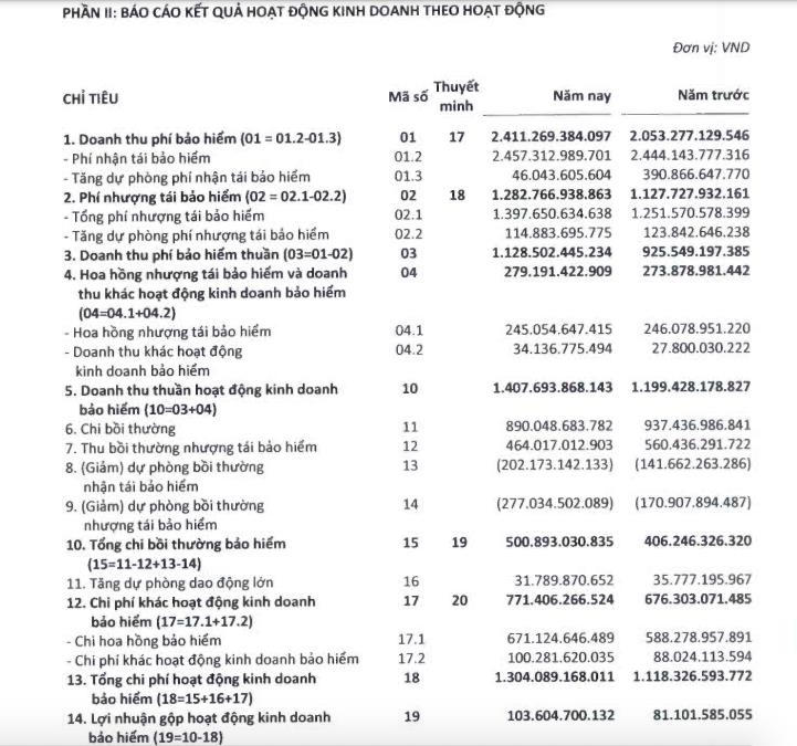 Doanh thu phí nhận tái bảo hiểm của PRE ghi nhận ở mức 2.411 tỷ đồng, tăng 17,4% so với cùng kỳ năm ngoái. Dù vậy lợi nhuận gộp hoạt động kinh doanh bảo hiểm vẫn tăng 27% so với năm trước đạt hơn 103 tỷ đồng.