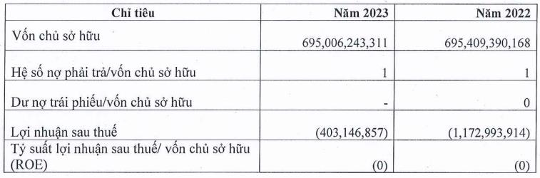 Tính đến cuối năm 2023, vốn chủ sở hữu của công ty giảm nhẹ xuống 695 tỷ đồng. Hệ số nợ phải trả ở mức 1 lần, tương ứng nợ phải trả 695 tỷ đồng.
