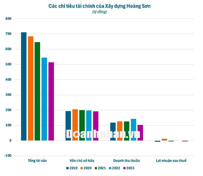 Doanh thu mỗi năm hàng trăm tỷ nhưng 5 năm gần nhất (2019-2023), Xây dựng Hoàng Sơn chỉ có duy nhất 1 năm thoát lỗ.