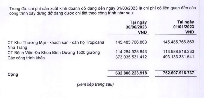 Điểm sáng là hàng tồn kho của CC1 giảm 27% xuống mức 732,7 tỷ đồng. Chi phí kinh doanh dở dang chiếm phần lớn với 632,8 tỷ đồng. Chủ yếu là khoản chi phí dùng ở Công trình Khu Thương mại - khách sạn - căn hộ Tropicana Nha Trang là 145,5 tỷ đồng, và Công trình Bệnh viện Đa khoa Bình Dương 1.500 giường bệnh có 114,3 tỷ đồng, còn lại các công trình khác hơn 373 tỷ đồng …