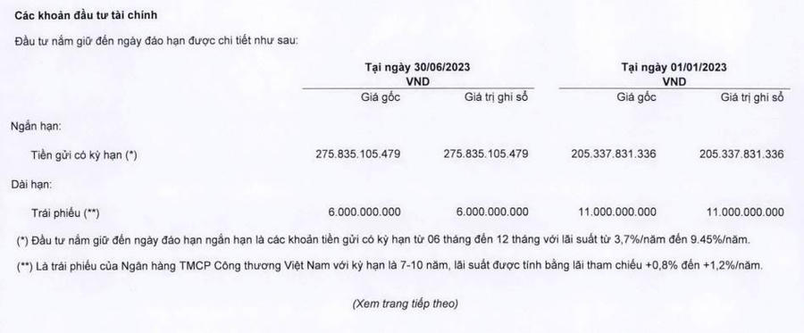 Đáng chú ý, trong số này, công ty có tới 6 tỷ đồng tiền đầu tư trái phiếu. Đây là trái phiếu của Ngân hàng TMCP Công thương Việt Nam, kỳ hạn 7-10 năm, lãi suất được tính bằng tham chiếu +0,8% đến +1,2%/năm.