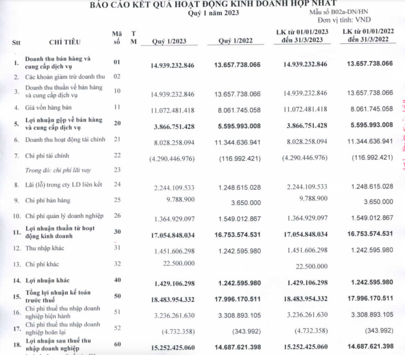 Về kết quả kinh doanh, quý I/2023, HC3 ghi nhận 14,9 tỷ đồng doanh thu thuần, tăng 9,5% so với quý I/2022.