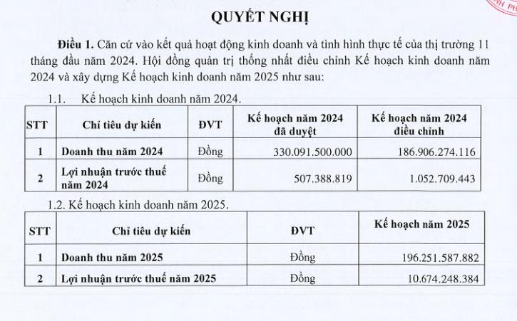 Cùng với đó, doanh nghiệp cũng lên kế hoạch kinh doanh năm 2025 với chỉ tiêu doanh thu đạt hơn 196,2 tỷ đồng và lãi trước thuế 10,6 tỷ đồng.