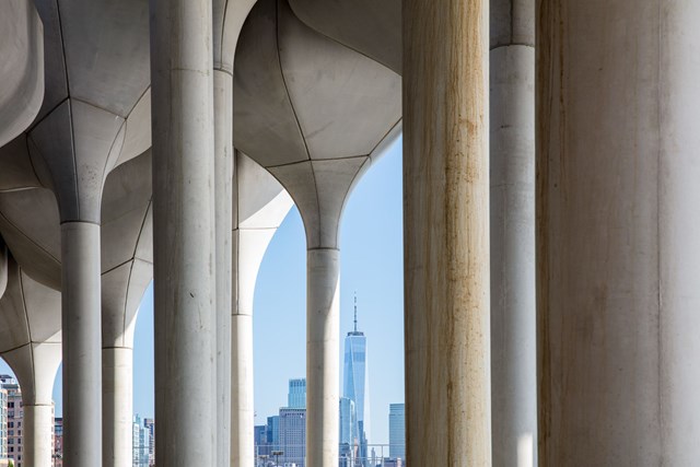 Được chống đỡ bởi hơn 300 cột bê tông hình cây nấm, công viên nổi Diller Island nằm cách bờ sông Hudson gần 60m.