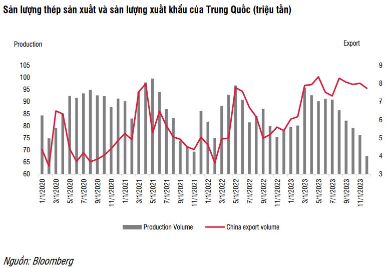 Ngoài ra, xuất khẩu thép Trung Quốc dự kiến giảm trong năm 2024 so với mức nền cao trong năm 2023, từ đó hỗ trợ giá thép xuất khẩu của Việt Nam. Theo Viện Nghiên cứu và Quy hoạch công nghiệp luyện kim Trung Quốc, nhu cầu thép ở Trung Quốc dự kiến sẽ giảm 1,7% trong năm 2024 sau khi giảm 3,3% trong năm 2023. Tuy nhiên, SSI Research giữ quan điểm giá thép sẽ khó tăng mạnh trong năm nay vì sự phục hồi của thị trường bất động sản Trung Quốc có thể sẽ vẫn chậm, và việc tăng giá thép tăng có thể thúc đẩy hoạt động sản xuất ở Trung Quốc quay trở lại.