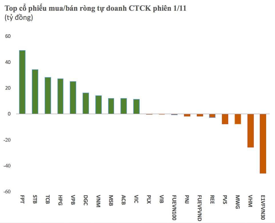 Cùng chiều khối ngoại, tự doanh CTCK mua ròng hơn 200 tỷ đồng trong phiên đầu tháng